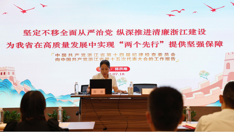 陳洪琳從過去五年的工作回顧、工作體會以及工作建議三大部分對省第十四屆紀律檢查委員會工作報告進行了解讀,并強調廣大黨員群眾要深入學習貫徹習近平總書記關于黨的自我革命的戰略思想,把全面從嚴治黨向縱深推進,共同營造風清氣正的政治生態,為共同富裕先行和省域現代化先行提供有力保障。