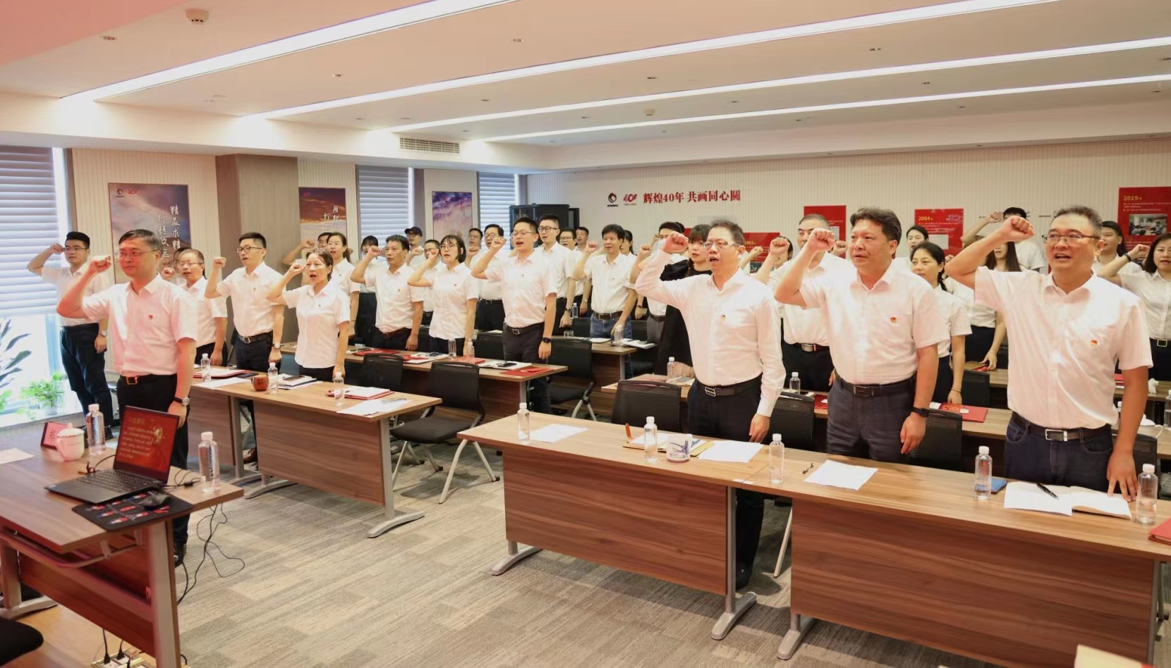 7月18日下午,浙江省冶金物資有限公司各黨支部圍繞“回顧光輝歷程,凝聚奮進力量”召開主題黨日活動,專題學習省第十五次黨代會精神。杭鋼集團黨委委員、副總經理劉樹林出席會議并宣講浙江省第十五次黨代會精神,會議由公司黨委書記、董事長鄭浩主持召開,冶金物資黨委委員、總經理徐華金,黨委委員、紀委書記陳洪琳,黨委委員、副總經理陳建,全體黨員及入黨積極分子等近60人參加會議。