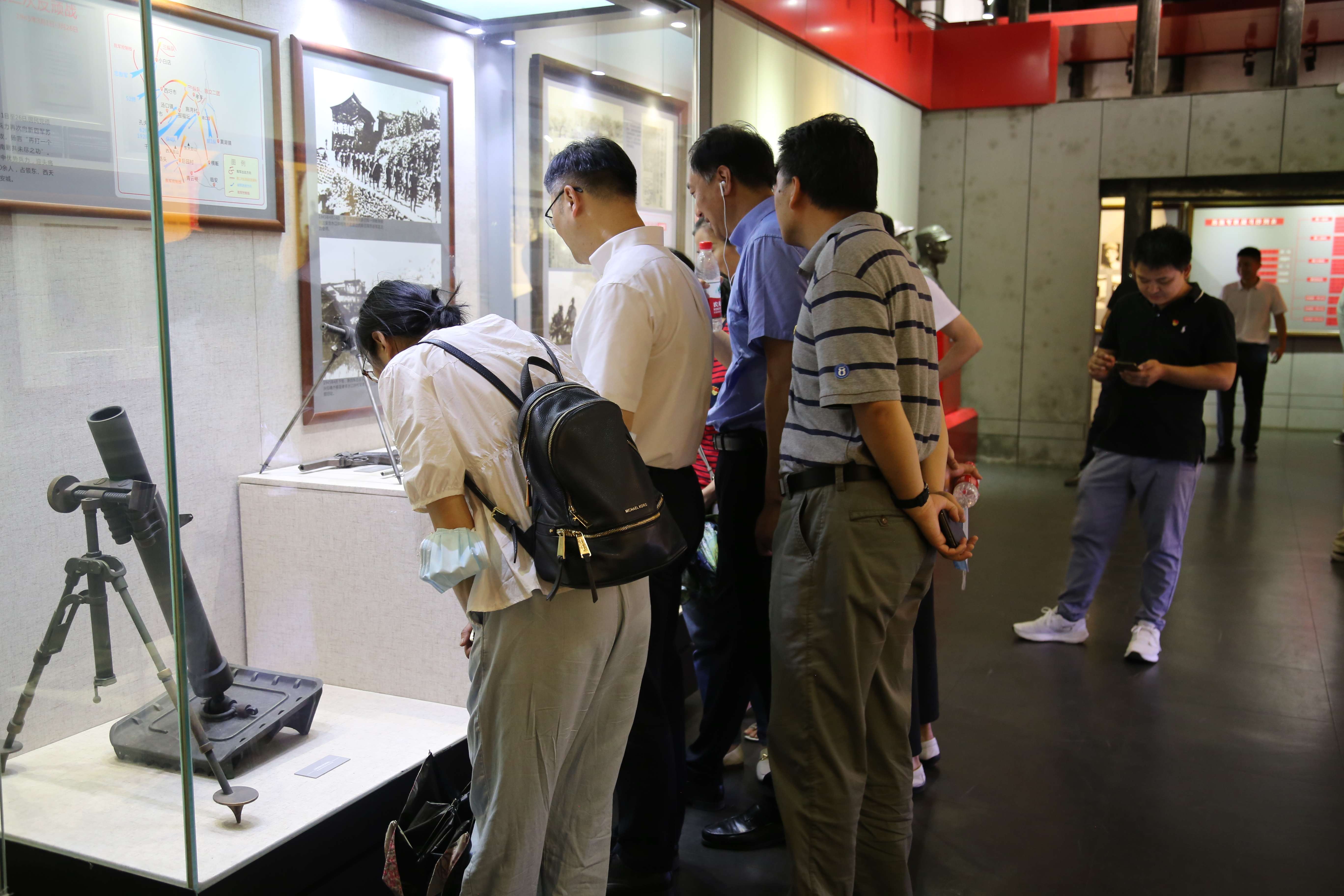 在紀(jì)念館內(nèi),黨員干部們循著革命先輩的紅色足跡,沿著年代溯源而上,在一張張照片,一件件文獻(xiàn)資料以及歷史原物的引領(lǐng)下,仿佛親身經(jīng)歷了一遍鐵血軍魂從初始萌芽到屹立不倒的過程,重溫粟裕將軍領(lǐng)導(dǎo)下的新四軍依托軍民力量共同抗日的輝煌史跡,深切感受著革命先烈先輩們?yōu)榱俗非竺褡濯?dú)立、舍生忘死的革命精神。