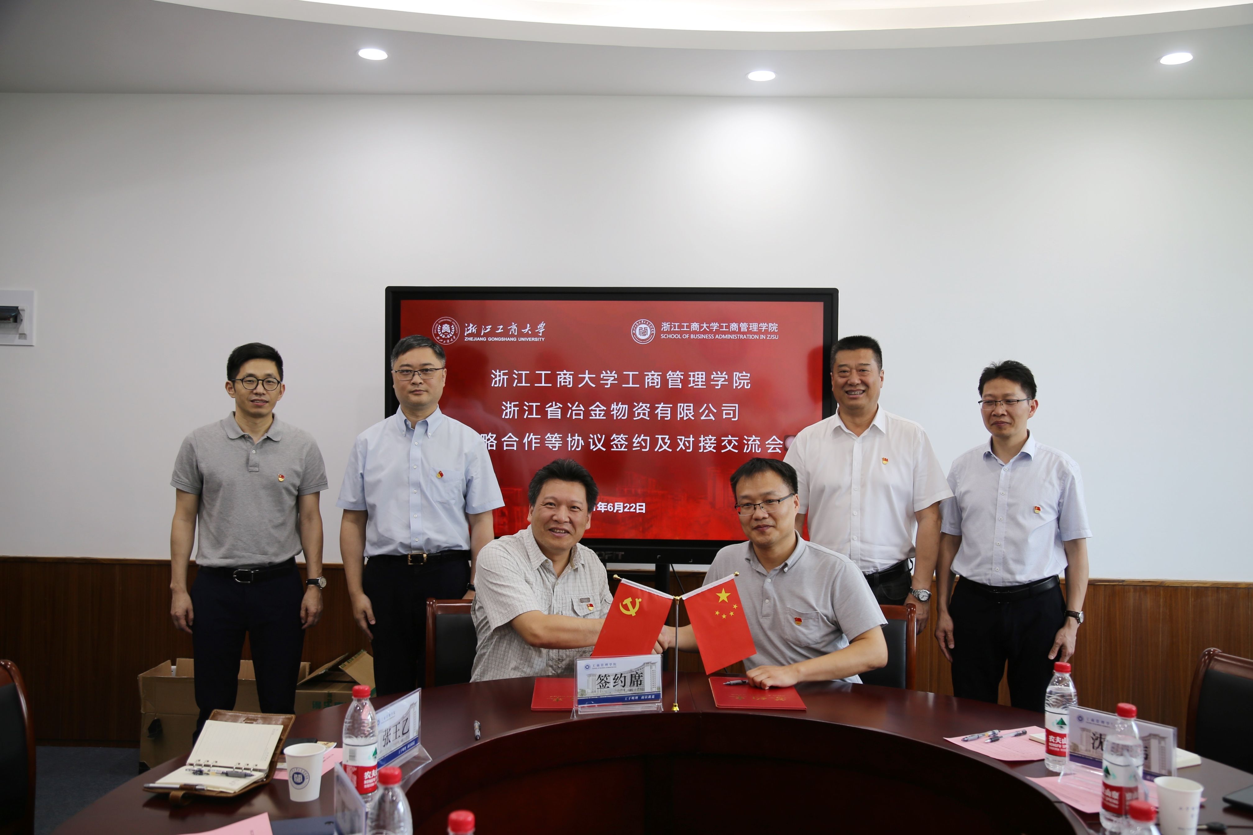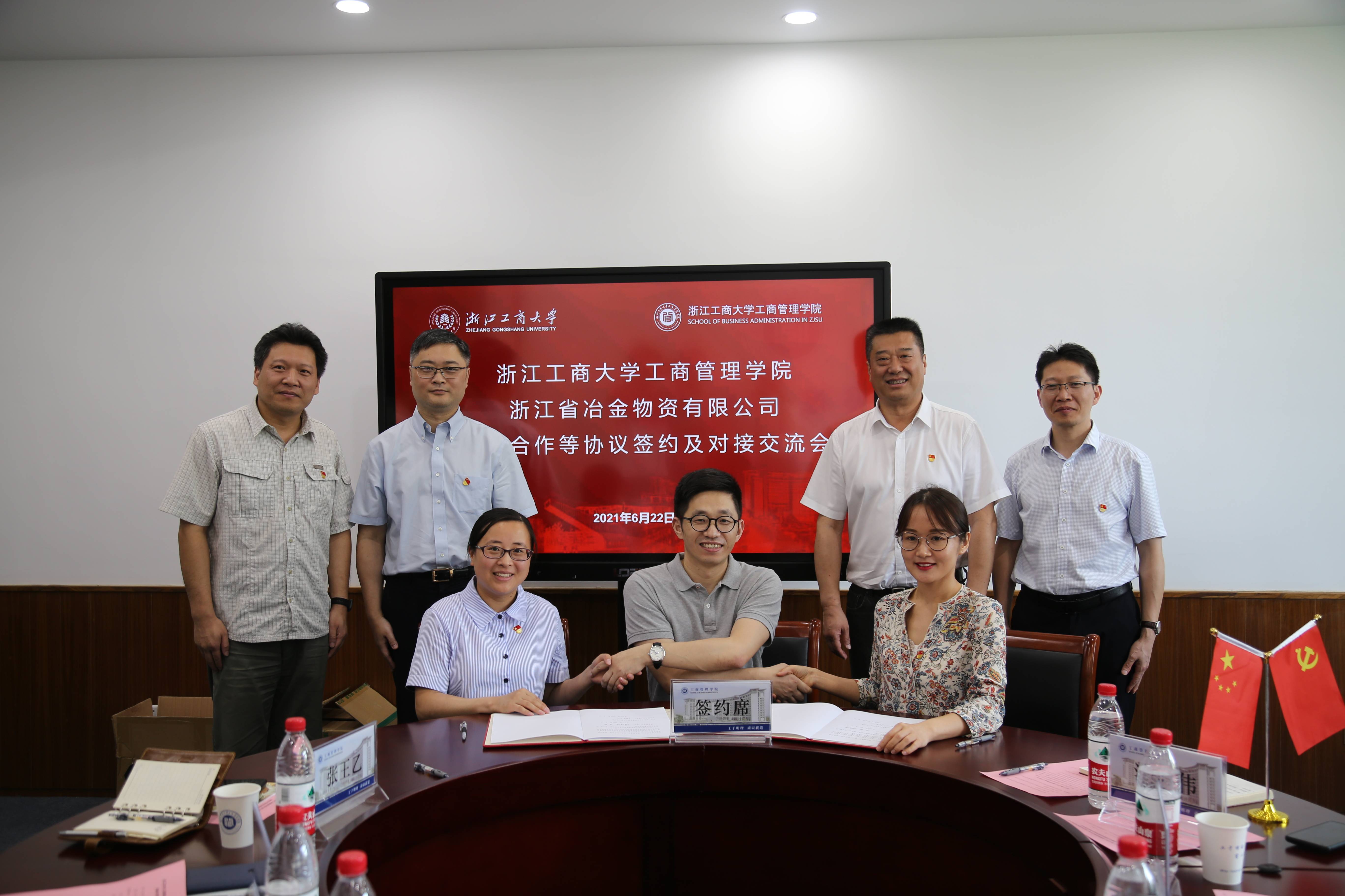 6月22日,浙江省冶金物資有限公司與浙江工商大學簽訂戰略合作協議。冶金物資黨委書記、董事長、總經理鄭浩,浙江工商大學工商管理學院黨委書記、教授乜標等領導,以及雙方黨支部代表參加簽約儀式。